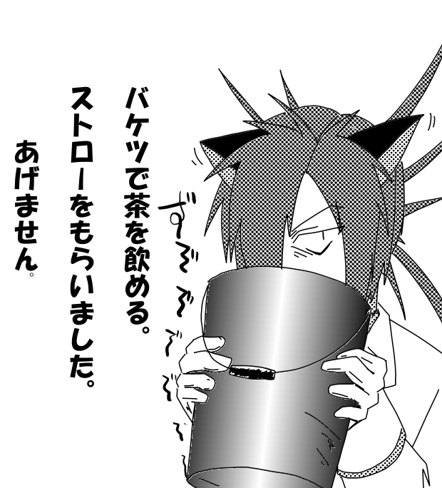 「茶。気分に応じて玉露・ほうじ茶・番茶・茎茶・深蒸し茶・玄米茶・抹茶・昆布茶にしいたけ茶…?この2つは弟者が置いていったものか。とりあえず飲料なら何でも飲むぞ。酒も手元が狂わぬ程度には嗜む。」