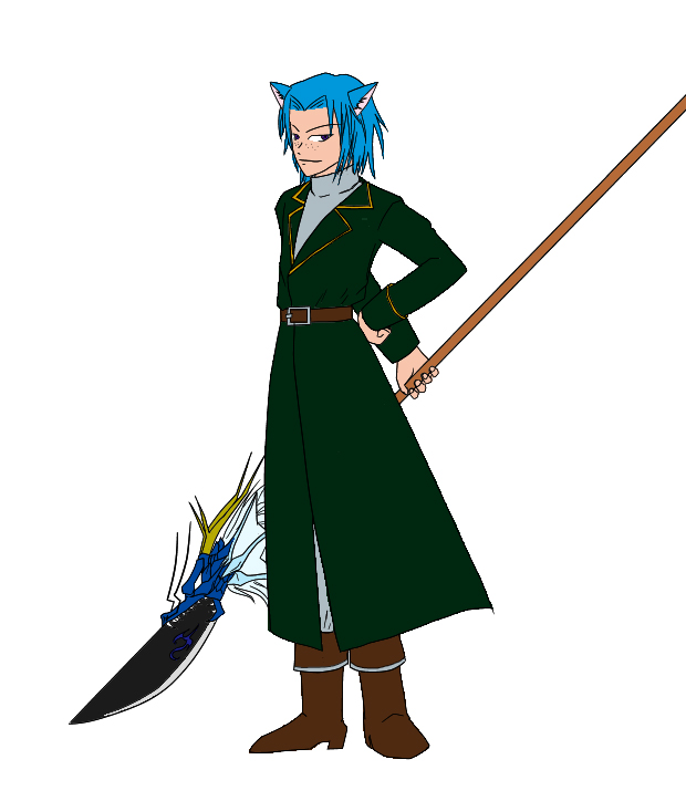 この服お気に入り。本戦中に描きたかった!が、無理だったので今描く。逆に一枚絵だと無駄に凝れるのは楽しい。武器楽しい。